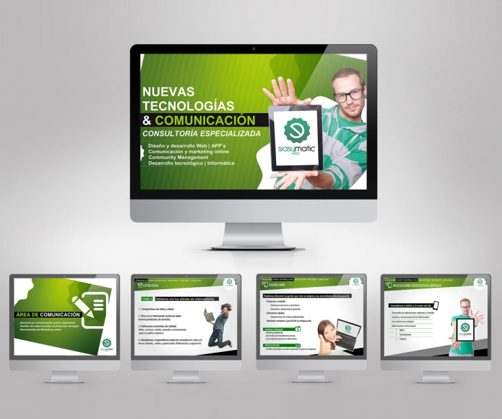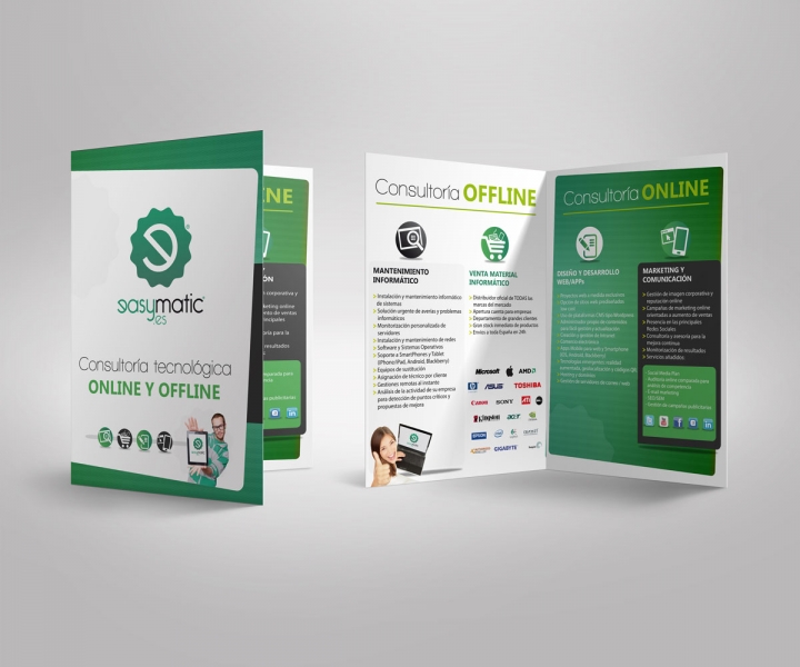 Diseño y cambio de imagen de diversos elementos corporativos de la Agencia de Marketing. Presentación corporativa, flyers, emailing, señalización.